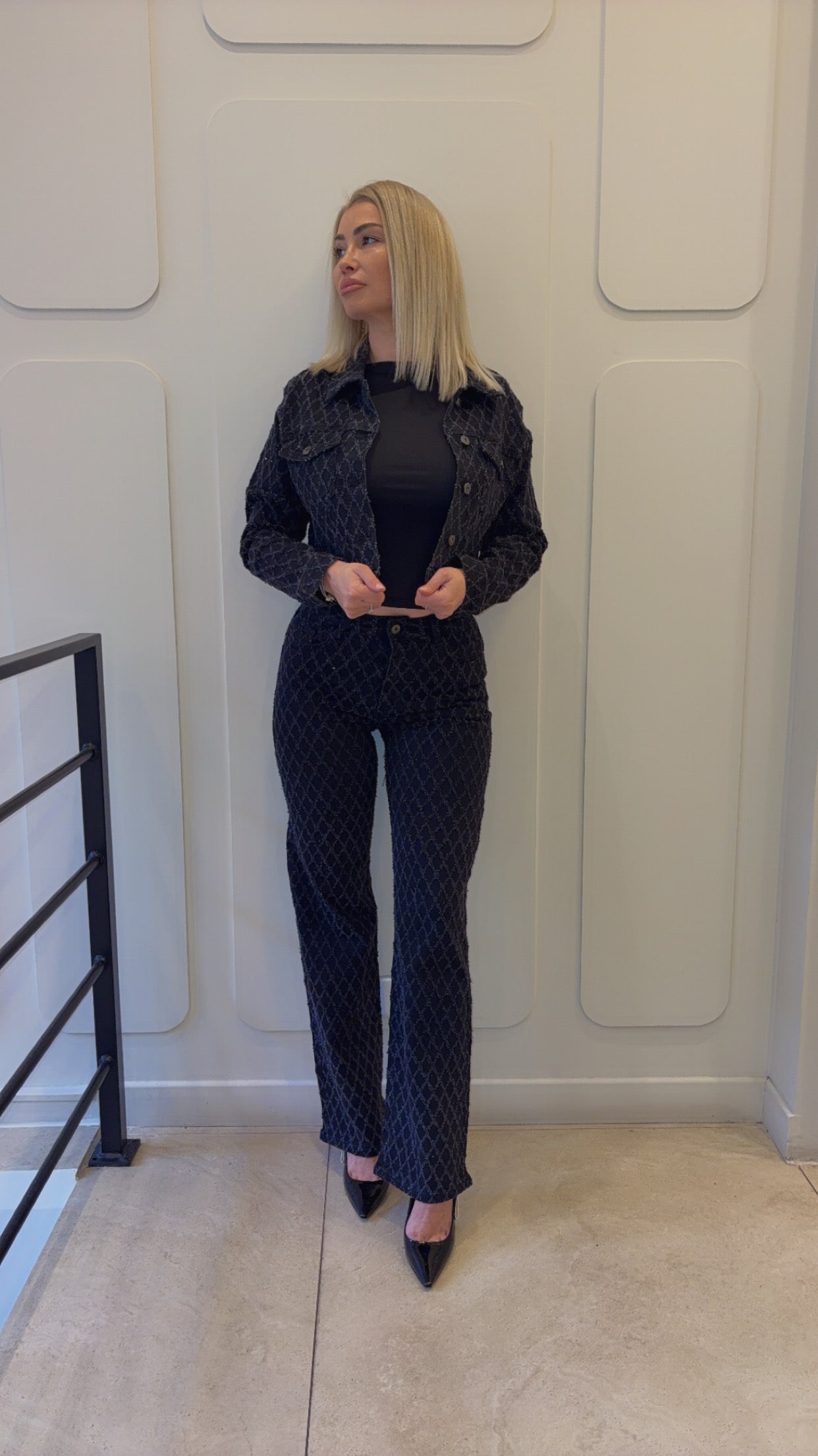 Sublimez votre silhouette avec ce jean noir taille haute orné de strass scintillants. Sa coupe élégante affine la taille tout en offrant un confort optimal. Parfait pour ajouter une touche d’éclat à vos tenues, il se porte aussi bien de jour comme de nuit pour un style à la fois chic et audacieux.