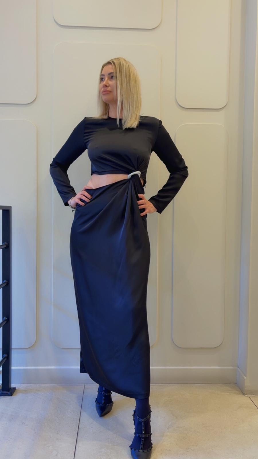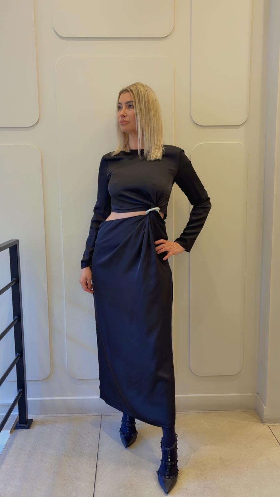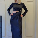 Découvrez l'élégance incarnée avec cette robe de soirée au charme irrésistible. Dotée d'une coupe longue et ajustée, elle épouse vos formes avec grâce tandis que l'ouverture centrale au niveau du ventre crée une allure sensuelle et sophistiquée. Le détail strasse argenté ajoute une touche de glamour scintillant qui capte la lumière à chaque mouvement. Confectionnée dans un tissu fluide et doux, les manches longues offrent une élégance intemporelle. Parfaite pour les occasions spéciales, cette robe transforme chaque instant en moment mémorable.