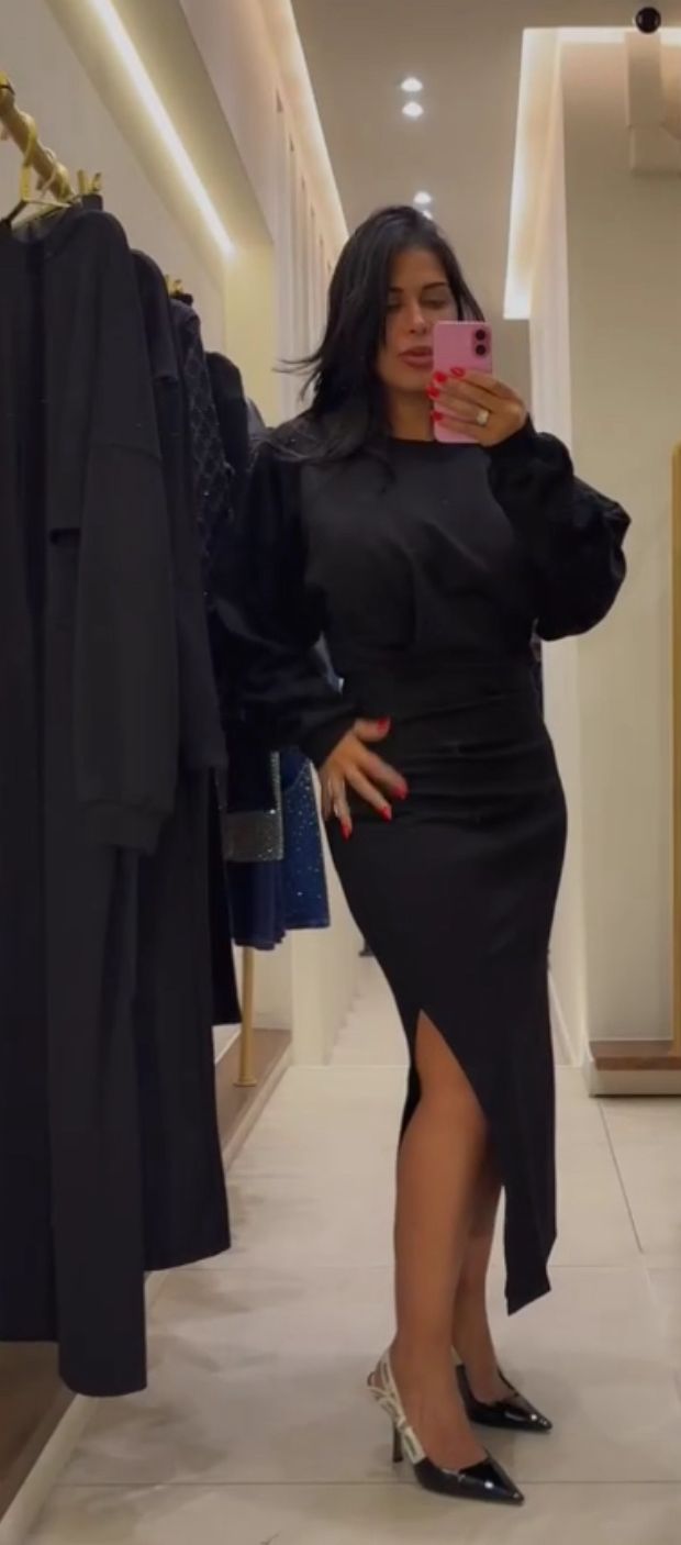 Découvrez l'élégance intemporelle avec cette robe noire aux manches longues plissées. Un basique raffiné qui s'adapte à tous vos styles, du bureau aux soirées chic. Les plis subtils des manches ajoutent une dimension sophistiquée à votre silhouette, tandis que la teinte noire universelle garantit une polyvalence sans égale. Incontournable dans toute garde-robe, cette pièce maîtresse vous accompagne avec grâce, saison après saison.